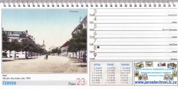 Šírka kalendáře je 315 mm, výška 150 mm, se stojanem 180 mm. Je vytištěn barevně na ofsetovém papíře, obálka na křídě, a opatřen kroužkovou vazbou. Týdenní kalendárium je umístěno na pravé straně listu a pod ním je umístěno měsíční kalendárium s aktuálním, předchozím a následujícím měsícem a inzertní plocha. Reprodukce dobové pohlednice o rozměru 148 x 111 mm je umístěna v levé části, což umožní sběratelům vystřihování obrázků z obou stran listu bez překrytí. V kalendáři je celkem 53 obrázků - 25 obrázků starého Mostu, 13 obrázků Litvínova a 15 obrázků obcí na Mostecku (Braňany, České Zlatníky, Dolní Jiřetín, Ervěnice, Holešice, Horní Jiřetín, Konobrž, Kopisty, Libkovice, Obrnice, Počerady, Skršín, Souš, Záluží a Židovice).